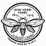 | Commentaire | Timbre à date “Premier Jour” conçu par Marion Favreau En savoir plus sur Wikipédia : Jean-Henri Fabre |