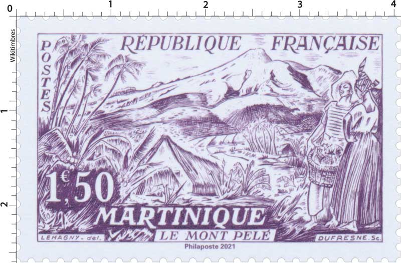 Timbre : 2021 Patrimoine de France - MARTINIQUE LE MONT PELÉ