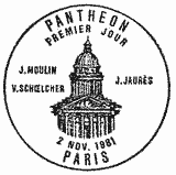 | Description | Panthéon. Le 21 mai 1981, le septennat de François Mitterrand s'ouvre par une cérémonie au Panthéon, durant laquelle le nouveau président rend hommage à Jean Jaurès (Tarn), Jean Moulin (Hérault) et Victor Schœlcher (Paris), en déposant des roses rouges |