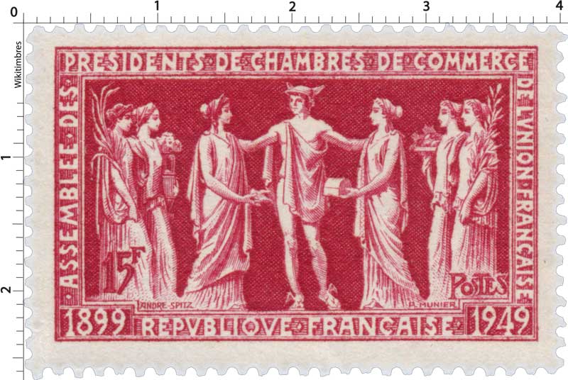 Timbre : 1949 ASSEMBLÉE DES PRÉSIDENTS DE CHAMBRES DE COMMERCE DE L'UNION FRANÇAISE