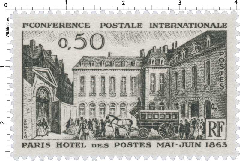 Timbre : 1963 1RE CONFÉRENCE POSTALE INTERNATIONALE PARIS HÔTEL DES POSTES MAI-JUIN 1863