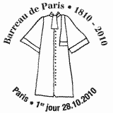 | Commentaire | Existe également en autoadhésif. La Poste émet un timbre commémorant le bicentenaire de la création du barreau de Paris. INFOS PRATIQUES PREMIER JOUR : 28 octobre 2010 Vente Anticipée : à Paris (Carré d’Encre) conçu par l’Atelier Thimonier |