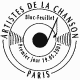 | Commentaire | Description synthétique du visuel du timbre : Les 6 timbres sont disposés dans le bloc de façon circulaire et épousent les contours d’un CD. Le fond du bloc évoque la foule et l’ambiance des concerts. Ambiance accentuée par la présence de faisceaux de projecteurs dont le principe est également repris sur chacun des visuels de timbres. |