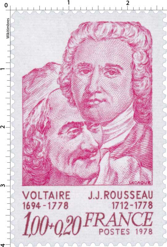 Timbre : 1978 VOLTAIRE 1694-1778 J.J. ROUSSEAU 1712-1778
