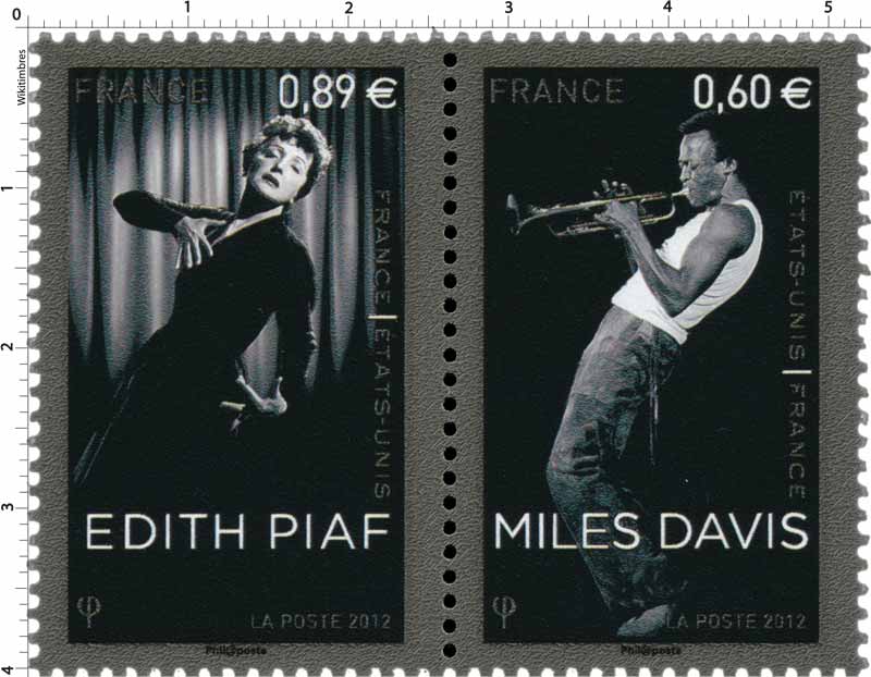 Timbre : 2012 France-États-Unis MILES DAVIS / ÉDITH PIAF
