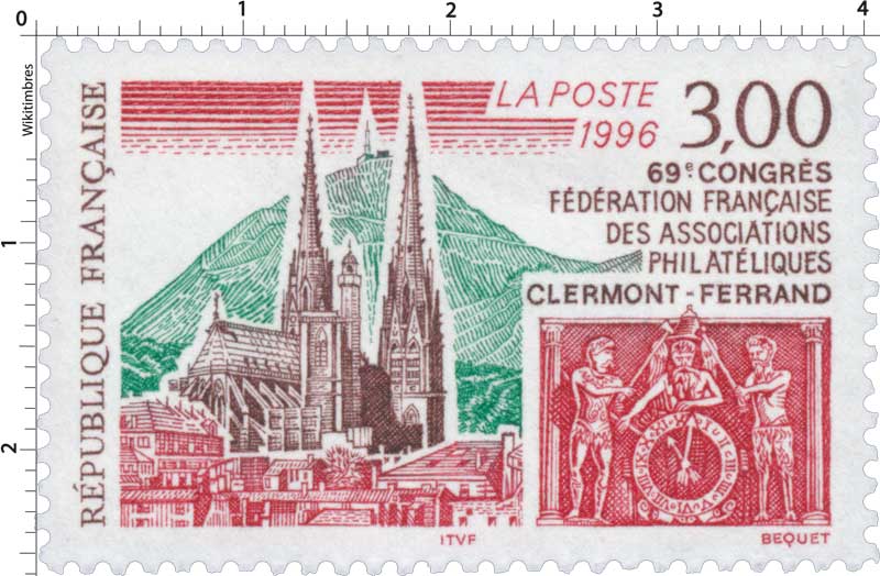 Timbre : 1996 69e CONGRÈS FÉDÉRATION FRANÇAISE DES ASSOCIATIONS PHILATÉLIQUES CLERMONT-FERRAND