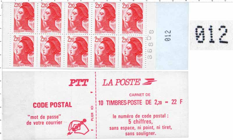 - Code postal Dentelé 3 cotés, chiffres larges, couverture impression rouge sur blanc