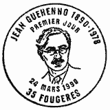 | Description | Centenaire de la naissance de Jean Guéhenno (1890-1978), écrivain et critique littéraire, né à Fougères (Ille-et-Vilaine) |