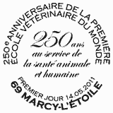 | Commentaire | Existe également en autoadhésif . C'est à Claude Bourgelat que L'on doit La création, il y a 250 ans à Lyon, de La première école vétérinaire du monde. Pour célébrer cet évènement, 2011 a été déclarée Année Mondiale Vétérinaire