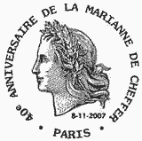 | Description | 40e anniversaire de la Marianne de Cheffer, utilisée de 1967 à 1971, issus du carnet de 12 TP |