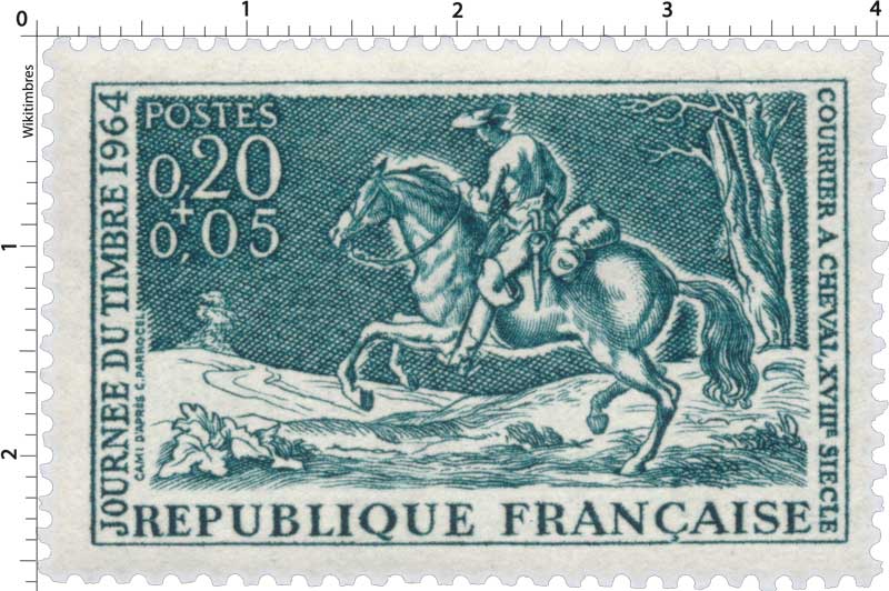 Timbre : JOURNÉE DU TIMBRE 1964 COURRIER A CHEVAL, XVIIIe SIÈCLE