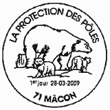 | Commentaire | La mise en vente anticipée a lieu du 27 au 29 mars 2009 au Salon philatélique de printemps à Mâcon. Un ours polaire et deux petits illustre le cachet premier jour par Beaujard. Les Postes chilienne et finlandaise ont invité d’autres opérateurs postaux à émettre des timbres-poste sur la thématique de la protection des pôles. Le choix graphique, les sujets et modes d’impression, sont laissés à l’initiative de chaque poste. L’idée étant avant tout de montrer l’attachement que portent les nations à l’univers polaire, de sensibiliser l’opinion sur le réchauffement climatique. |