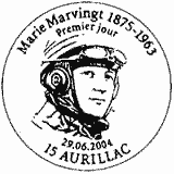 | Description | Personnalité. Hommage à Marie Marvingt, aviatrice et créatrice de l'avion sanitaire (1875-1963), né à Aurillac (Cantal) |