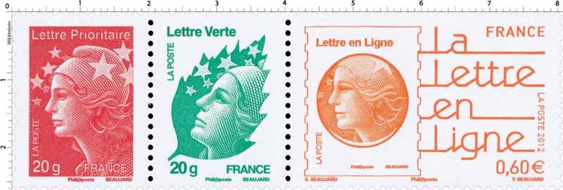 Ce bloc de 3 timbres commémore le 1er anniversaire de la gamme courrier rapide. Imprimé en taille-douce, il met en scène 3 timbres : la Marianne et l’Europe Lettre Prioritaire 20 g rouge, la Lettre