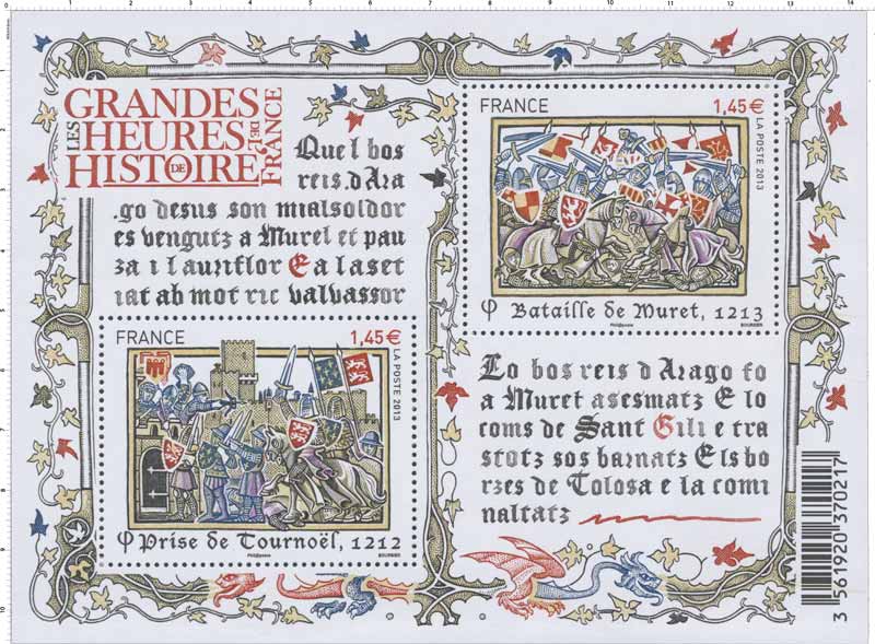 Bataille de Muret 1213 et prise de Tournoël 1212 / Timbre à date “Premier Jour” conçu par Louis Arquer