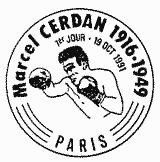 | Description | 75e anniversaire de la naissance de Marcel Cerdan (1916-1949), champion de boxe, né en Algérie |