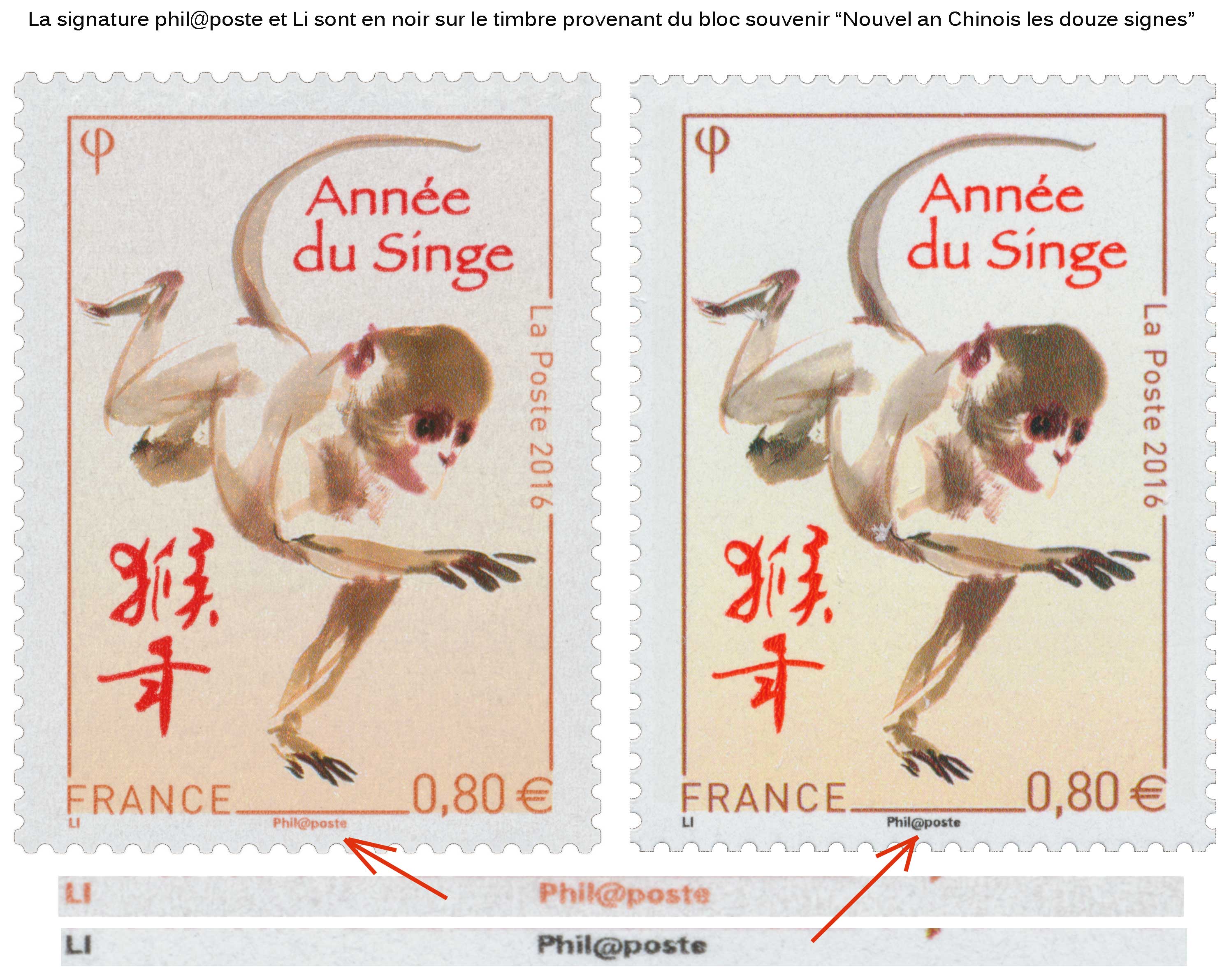 Différence sur le timbre "nouvel an chinois - Année du singe"