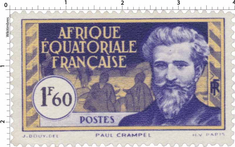 Timbre : Paul Crampel Afrique Équatoriale Française Mesures Format d'imp 36 x 20 mm Dents incluses 40 x 24 mm Forme horizontal Phosphore Non Impression - Complément - Couleur violet et jaune Valeur 1,60 F Dentelure 13 1/2 Emis en - Quantité - Auteurs Dessinateur - Graveur - Mise en page - Mentions - Numéros & Dates N° Philatelix 85 N° Michel - Date d'émission 01/01/1939 Date de retrait 00/00/0000 Classements Groupe AEF - Paul Crampel Catégorie Timbres poste Familles explorateurs personnages Usage - Ancienne colonie AEF Description Paul Crampel Commentaire - Mes timbres & notes personnelles www.wikitimbres.fr