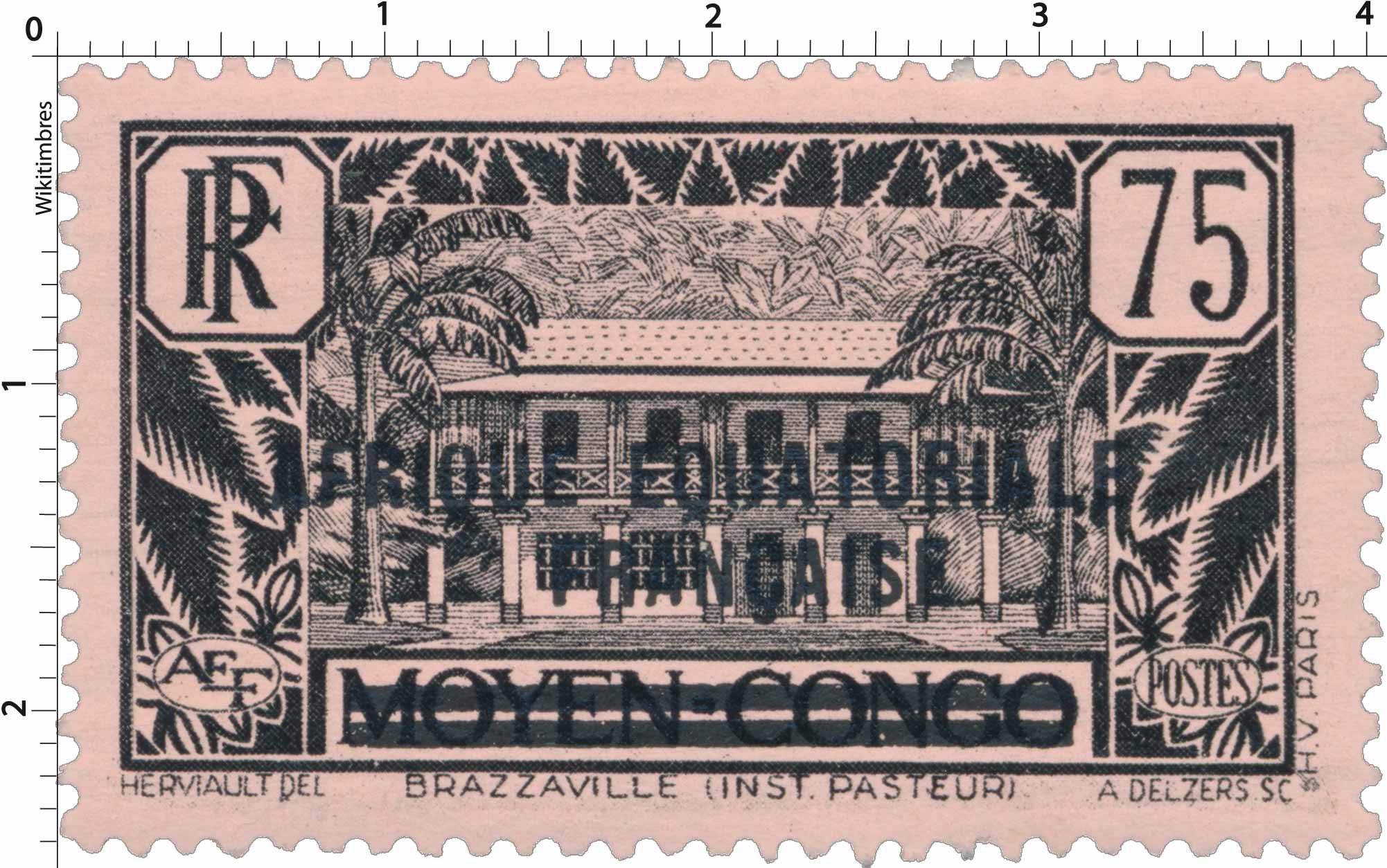 | Description | Institut Pasteur, à Brazzaville, timbre du Congo surchargé "Afrique Equatoriale Française" |