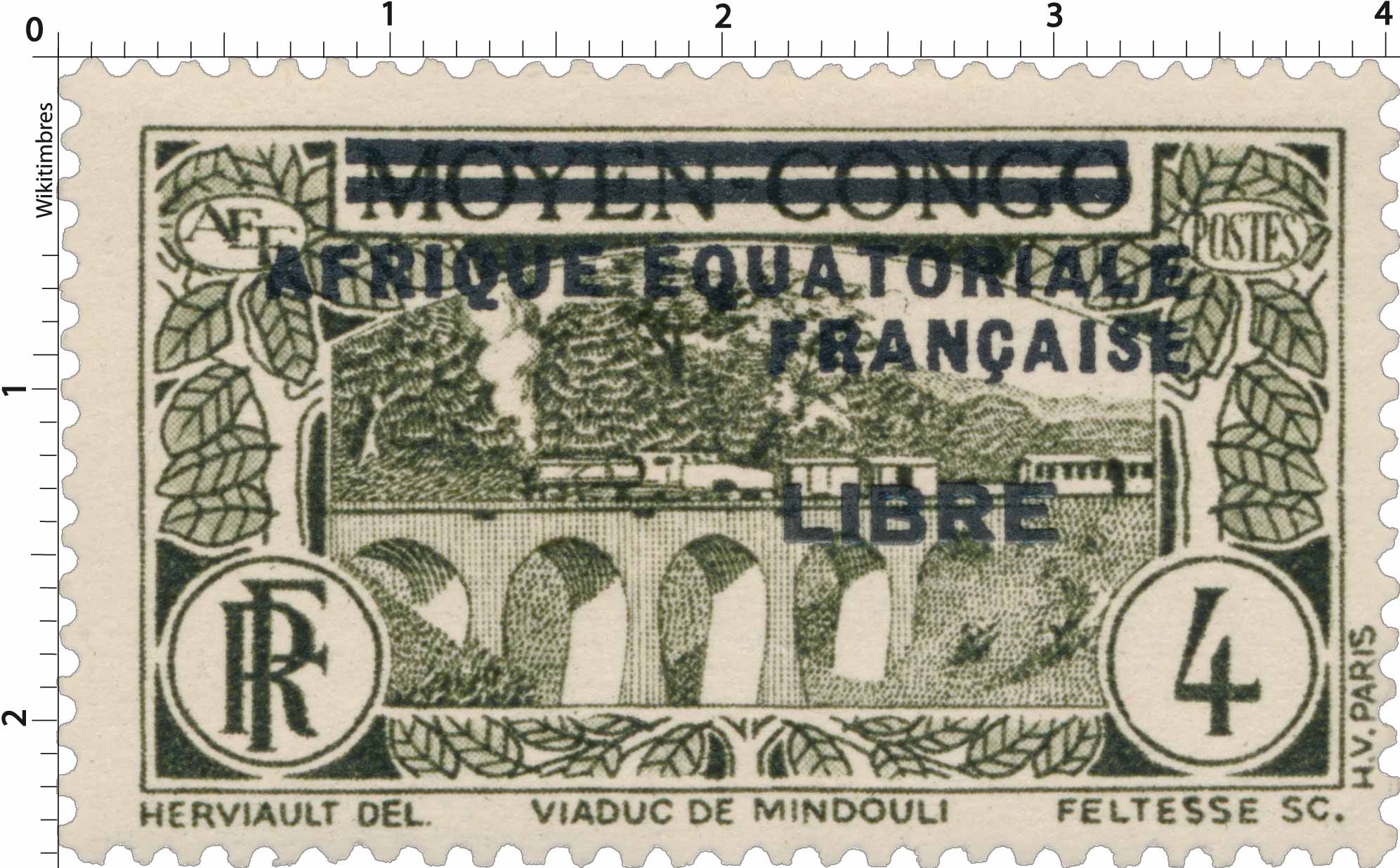 | Description | Viaduc de Mindouli, timbre du Congo surcharge noire "Libre" |