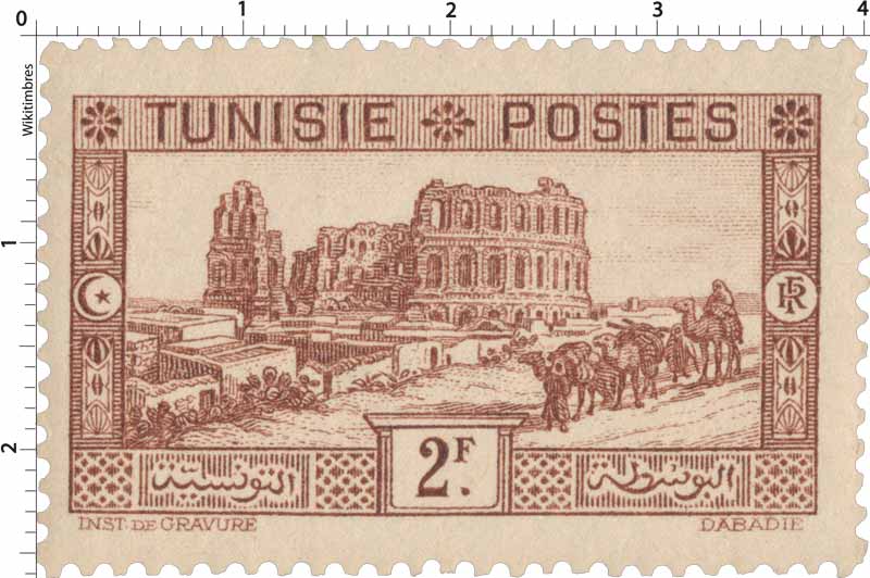 Timbre : Tunisie - Amphithéâtre d'El Djem Mesures Format d'imp - Dents incluses - Forme horizontal Phosphore - Impression - Complément - Couleur - Valeur - Dentelure - Emis en - Quantité - Auteurs Dessinateur - Graveur - Mise en page - Mentions - Numéros & Dates N° Philatelix - N° Michel - Date d'émission 01/01/1931 Date de retrait - Classements Groupe Tunisie - Amphithéâtre d'El Djem Catégorie Timbres poste Familles archéologique patrimoine Usage - Ancienne colonie Tunisie (en cours) Description Amphithéâtre d'El Djem Commentaire - Mes timbres & notes personnelles www.wikitimbres.fr