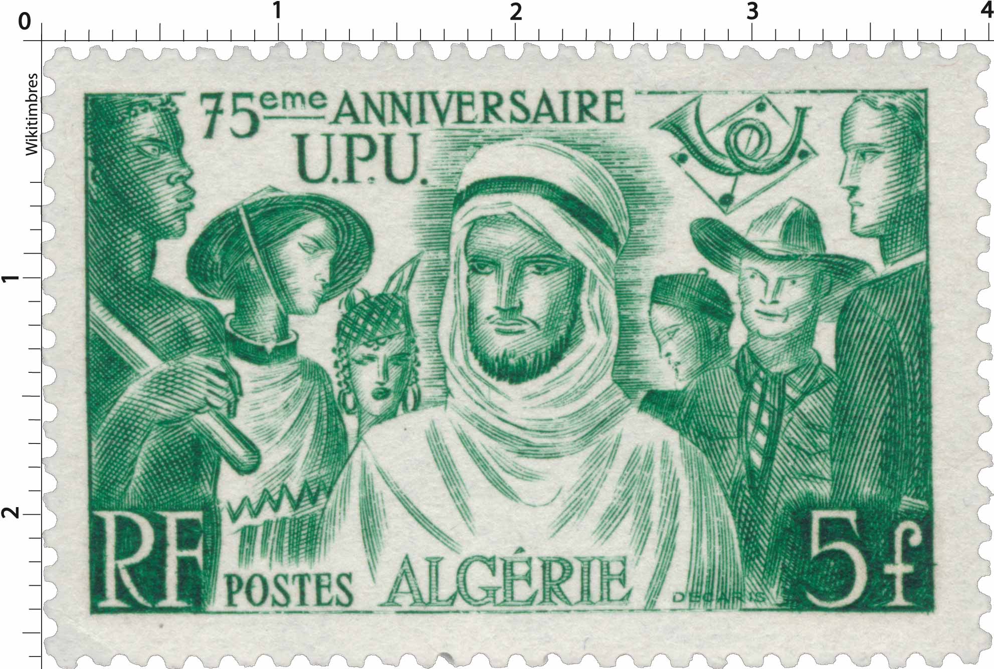 | Description | 75ème anniversaire de l'Union Postale Universelle (U.P.U.) |