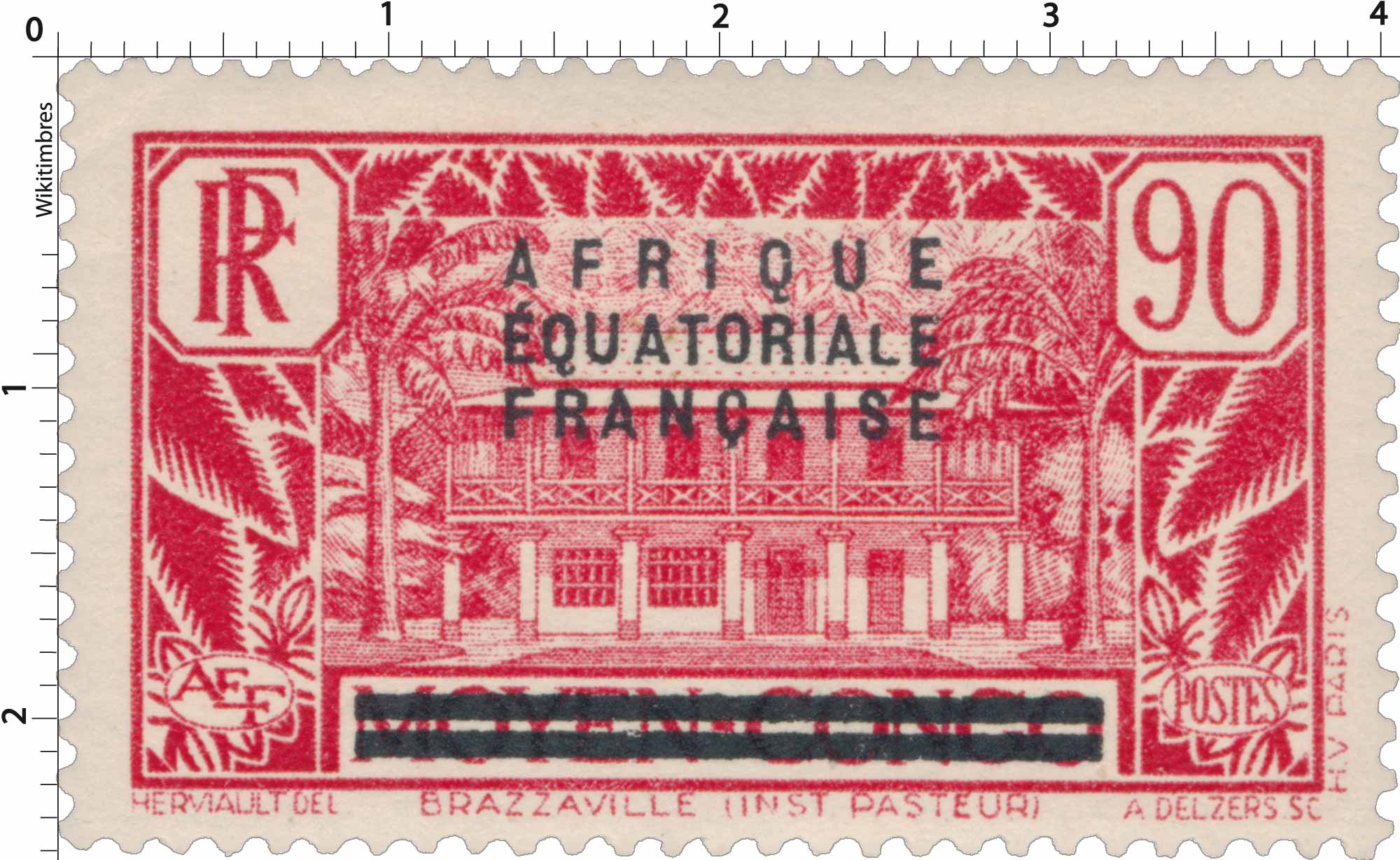 | Description | Institut Pasteur, à Brazzaville, timbre du Congo surchargé "Afrique Equatoriale Française" |