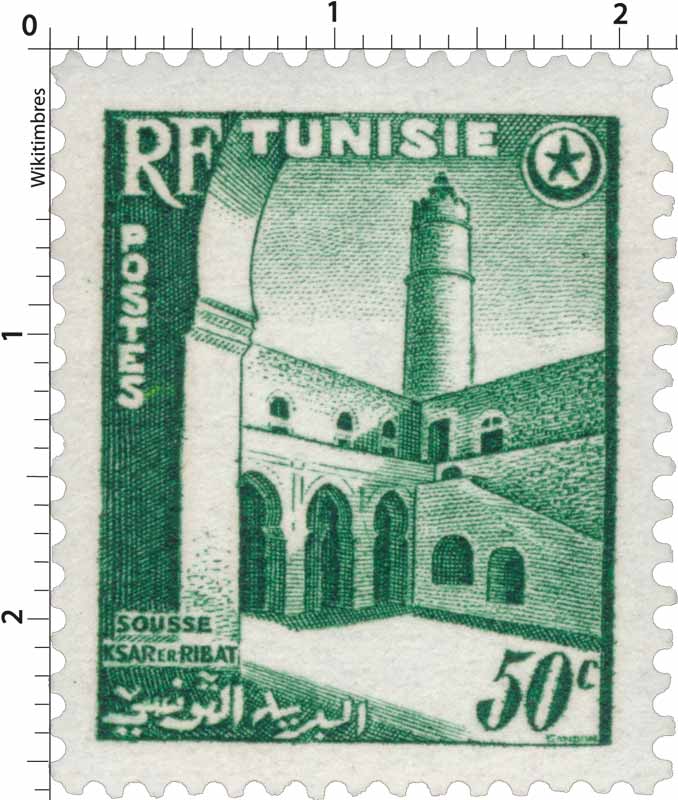 Timbre : Tunisie - Sousse Ksar er Ribat Mesures Format d'imp - Dents incluses - Forme vertical Phosphore - Impression - Complément - Couleur vert Valeur - Dentelure - Emis en - Quantité - Auteurs Dessinateur - Graveur - Mise en page - Mentions - Numéros & Dates N° Philatelix - N° Michel - Date d'émission 01/01/1954 Date de retrait - Classements Groupe Tunisie - Sousse Ksar er Ribat Catégorie Timbres poste Familles Usage - Ancienne colonie Tunisie (en cours) Description Ksar er Ribat Commentaire - Mes timbres & notes personnelles www.wikitimbres.fr