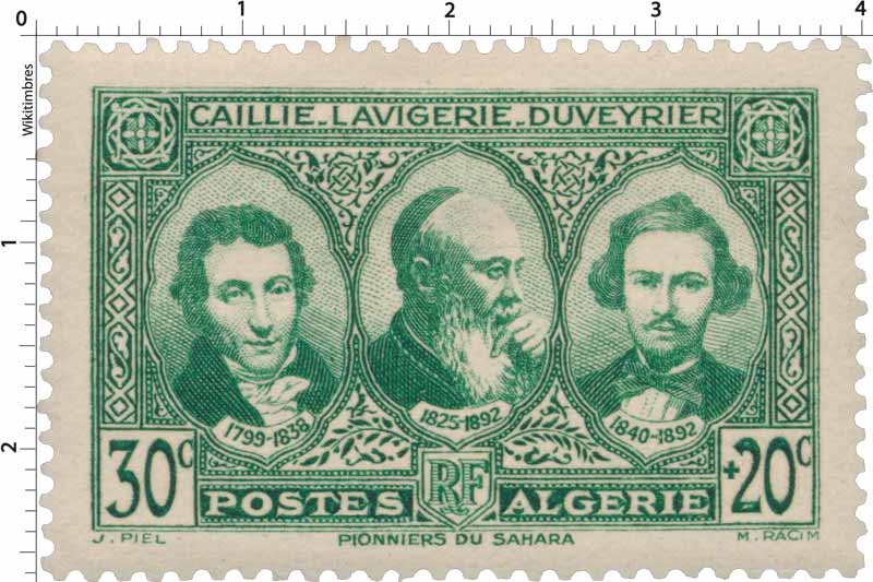 | Description | En l'Honneur des Pionniers du Sahara Effigies de René Caillié & Lavigerie & Henri Duveyrier |
