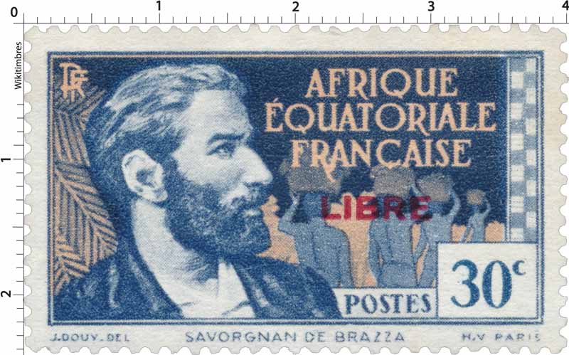 | Description | Savorgnan de Brazza, surcharge rouge "Libre" |