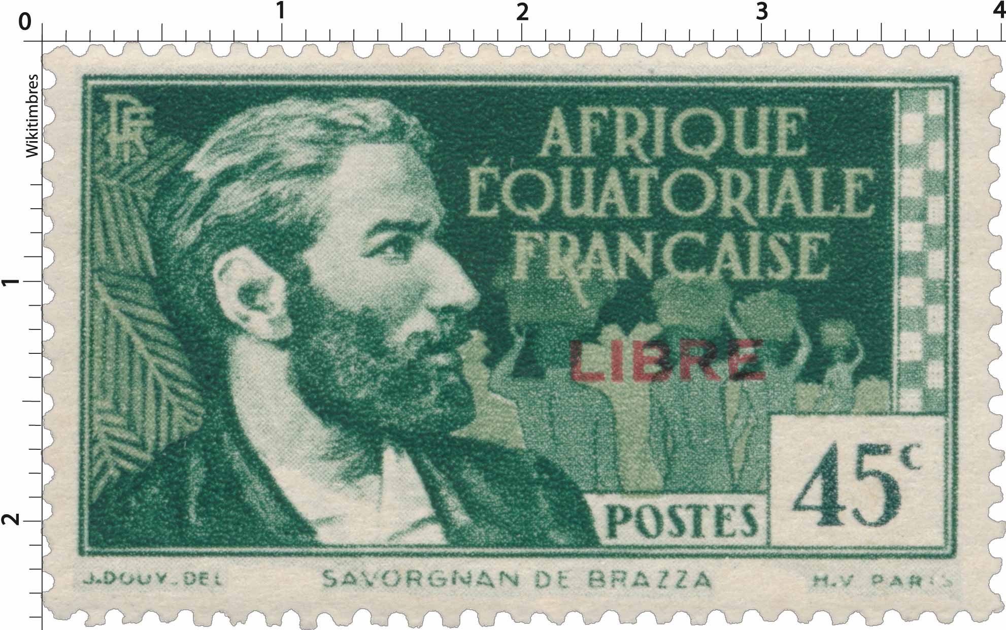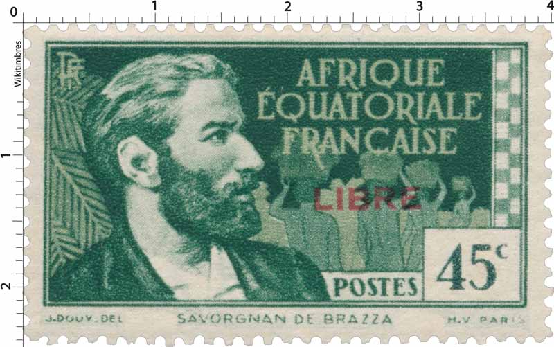| Description | Savorgnan de Brazza, surcharge rouge "Libre" |
