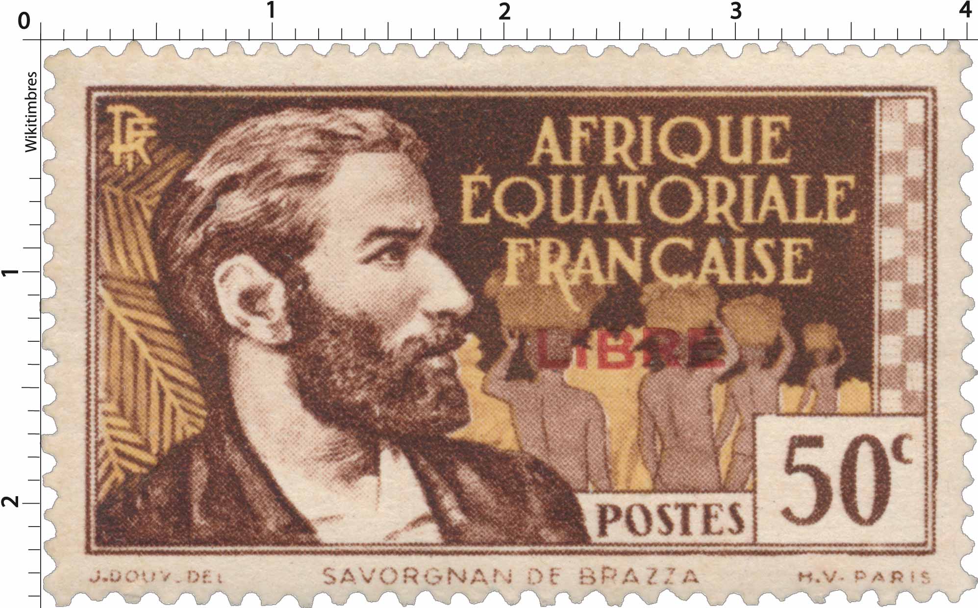 | Description | Savorgnan de Brazza, surcharge rouge "Libre" |