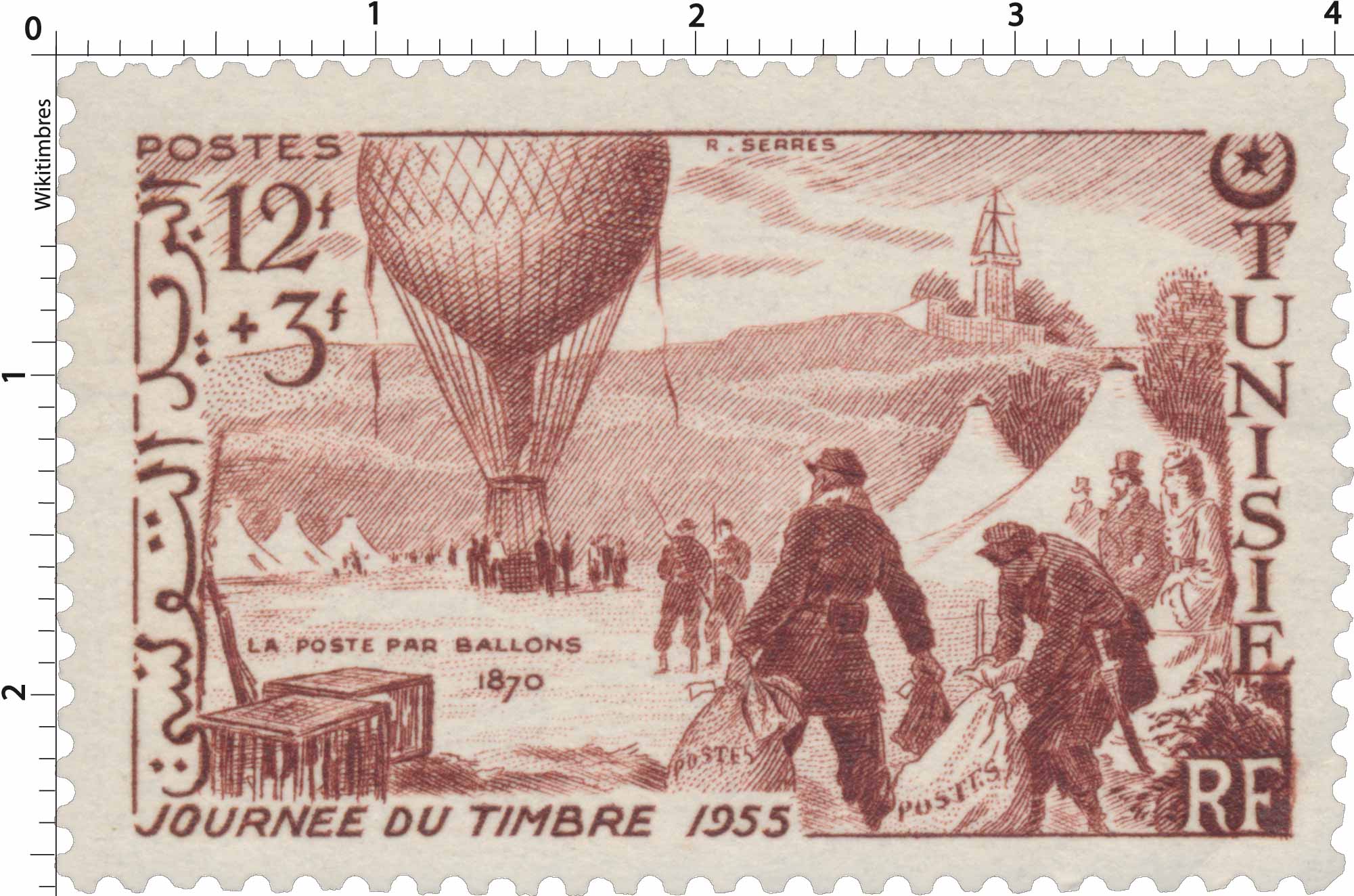 | Description | Journée du timbre 1955 et 85e anniversaire de la poste par ballons 1870 |