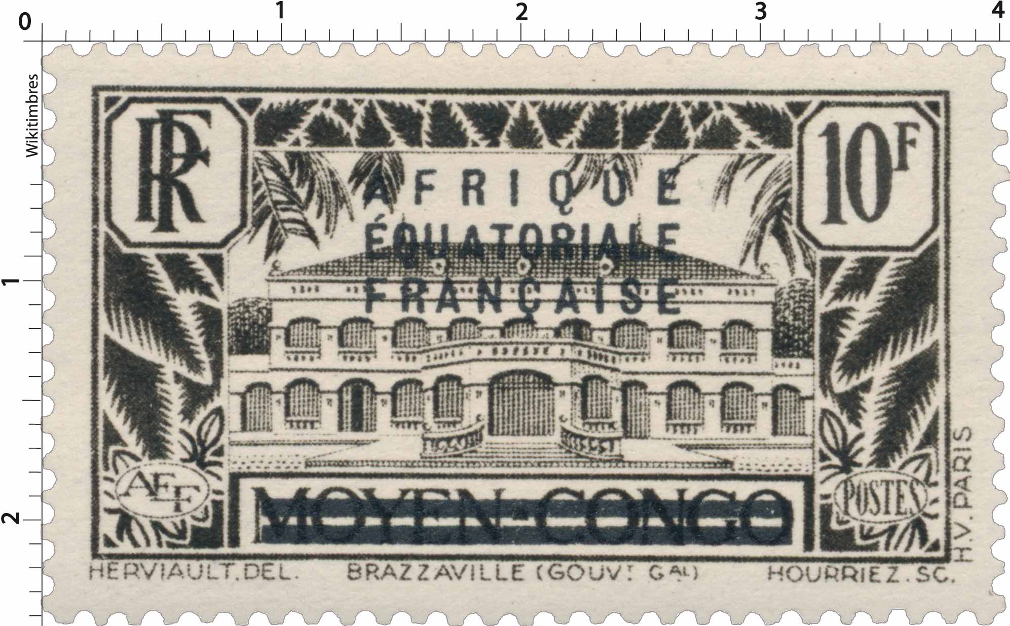 | Description | Palais du gouverneur, à Brazzaville, timbre du Congo surchargé "Afrique Equatoriale Française" |