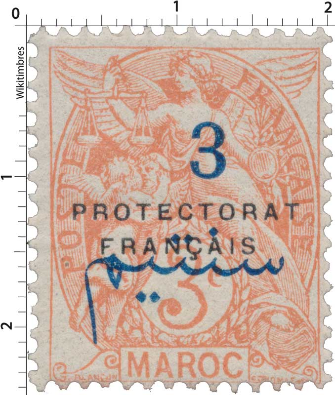 | Description | Surchargé "Protectorat français" et nom de la monnaie écrit en arabe |