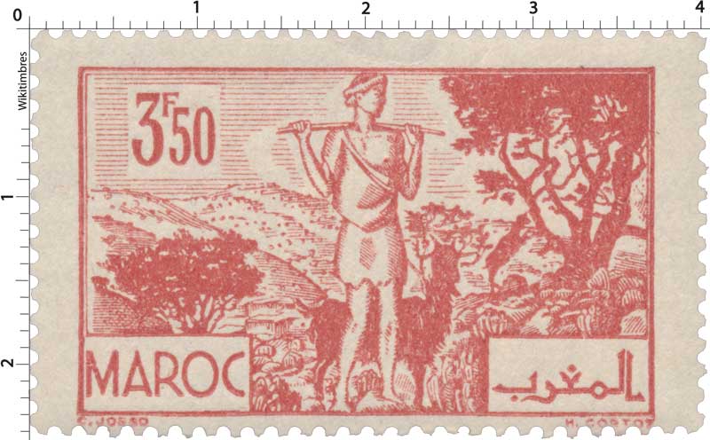 Timbre : 1945 Maroc - Les Arganiers Mesures Format d'imp - Dents incluses - Forme horizontal Phosphore - Impression - Complément - Couleur - Valeur - Dentelure - Emis en - Quantité - Auteurs Dessinateur - Graveur - Mise en page - Mentions - Numéros & Dates N° Philatelix - N° Michel - Date d'émission 01/01/1945 Date de retrait - Classements Groupe Maroc - Les Arganiers Catégorie Timbres poste Familles Usage - Ancienne colonie Maroc (en cours) Description - Commentaire - Mes timbres & notes personnelles www.wikitimbres.fr