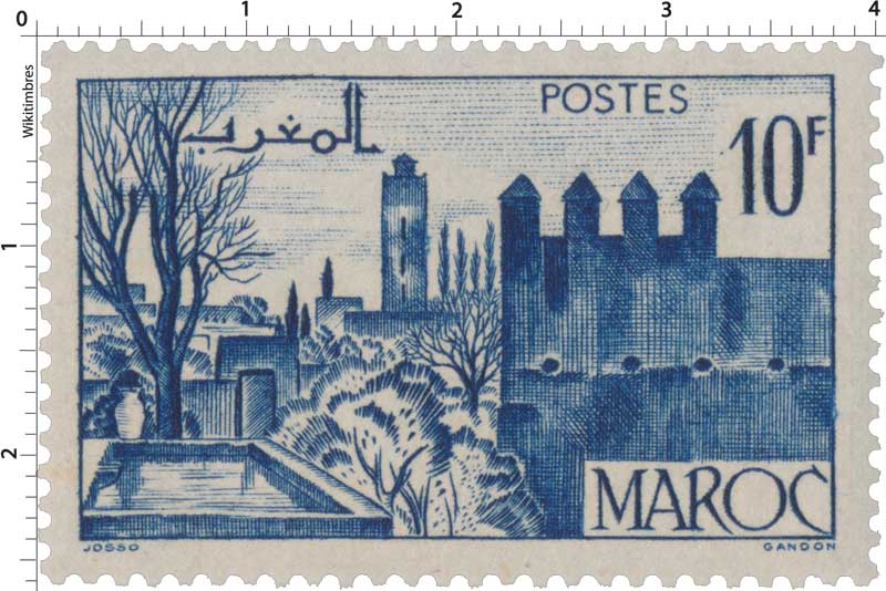 Timbre : 1947 Maroc - Jardins de Fès Mesures Format d'imp - Dents incluses - Forme horizontal Phosphore - Impression - Complément - Couleur - Valeur - Dentelure - Emis en - Quantité - Auteurs Dessinateur - Graveur - Mise en page - Mentions - Numéros & Dates N° Philatelix - N° Michel - Date d'émission 01/01/1947 Date de retrait - Classements Groupe Maroc - Jardins de Fès Catégorie Timbres poste Familles Usage - Ancienne colonie Maroc (en cours) Description - Commentaire - Mes timbres & notes personnelles www.wikitimbres.fr