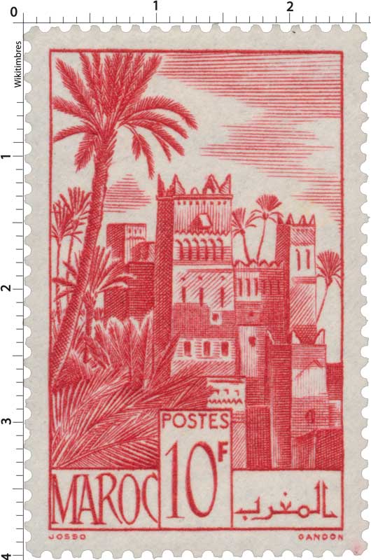 Timbre : 1947 Maroc - Kasbah d'Ouarzazat Mesures Format d'imp - Dents incluses - Forme spécial Phosphore - Impression - Complément - Couleur - Valeur - Dentelure - Emis en - Quantité - Auteurs Dessinateur - Graveur - Mise en page - Mentions - Numéros & Dates N° Philatelix - N° Michel - Date d'émission 01/01/1947 Date de retrait - Classements Groupe Maroc - Kasbah d'Ouarzazat Catégorie Timbres poste Familles Usage - Ancienne colonie Maroc (en cours) Description - Commentaire - Mes timbres & notes personnelles www.wikitimbres.fr