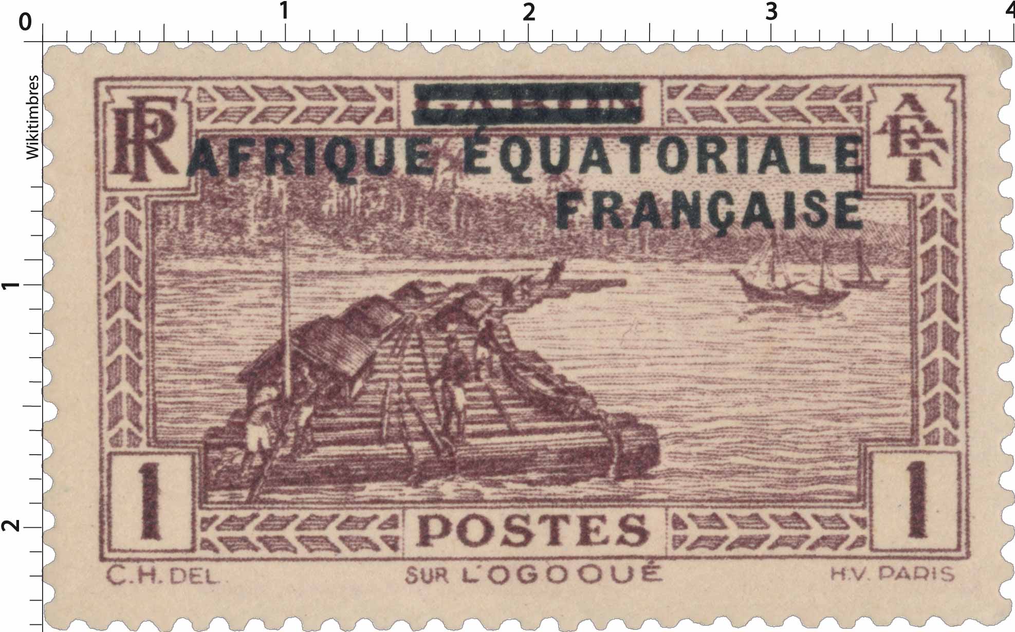 | Description | Sur le fleuve Ogooué, timbre du Gabon surchargé "Afrique Equatoriale Française" |