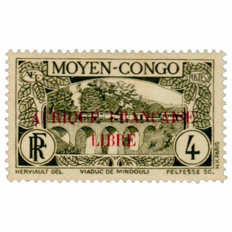 | Description | Viaduc de Mindouli, surcharge rouge "Afrique Française Libre" |