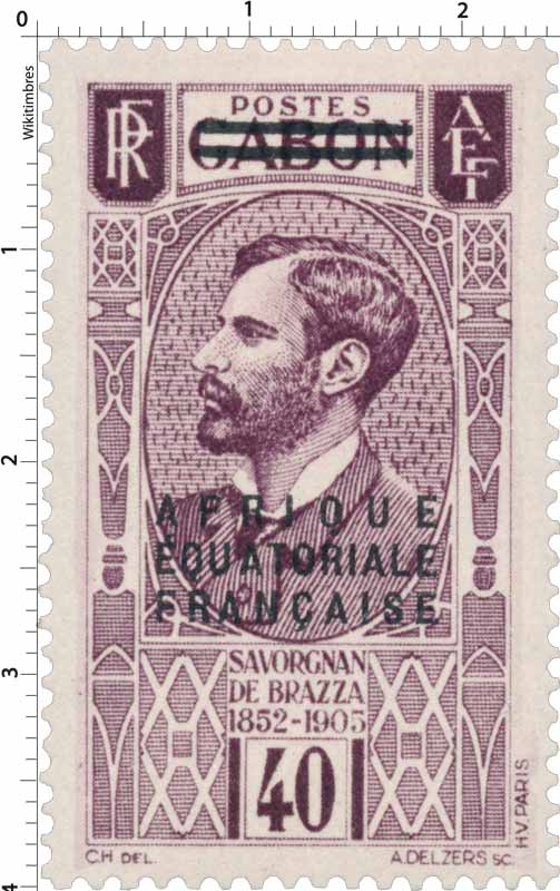| Description | Savorgnan de Brazza, timbre du Gabon surchargé "Afrique Equatoriale Française" |