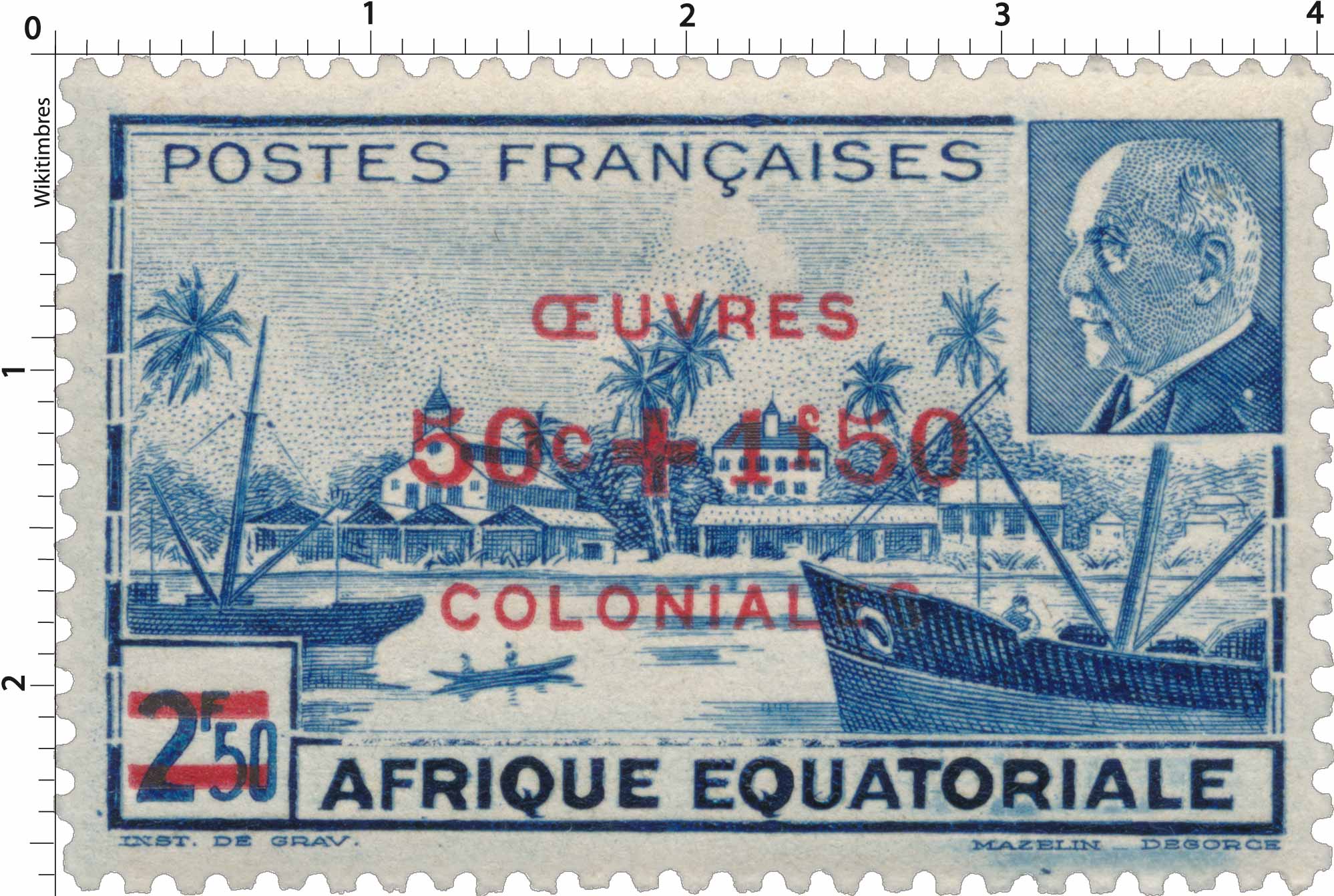 | Description | Vue de Libreville et Maréchal Pétain, surcharge en rouge "oeuvres 0,50 c+1,50 F coloniales" |