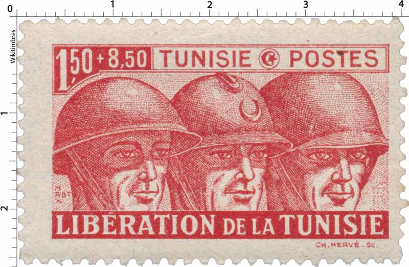 Timbre : Libération de la Tunisie Mesures Format d'imp - Dents incluses - Forme - Phosphore - Impression - Complément - Couleur - Valeur - Dentelure - Emis en - Quantité - Auteurs Dessinateur - Graveur - Mise en page - Mentions - Numéros & Dates N° Philatelix - N° Michel - Date d'émission 01/01/1944 Date de retrait - Classements Groupe - Catégorie Timbres poste Familles Usage - Ancienne colonie Tunisie (en cours) Description Tunisie - Anglais, Français, Américains Commentaire - Mes timbres & notes personnelles www.wikitimbres.fr
