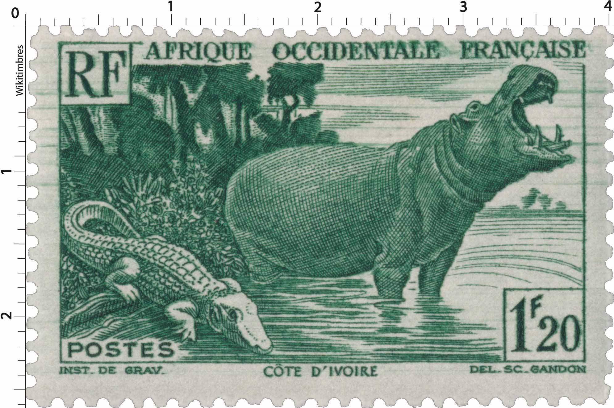| Description | Hippopotame et crocodile en Côte-d'Ivoire |