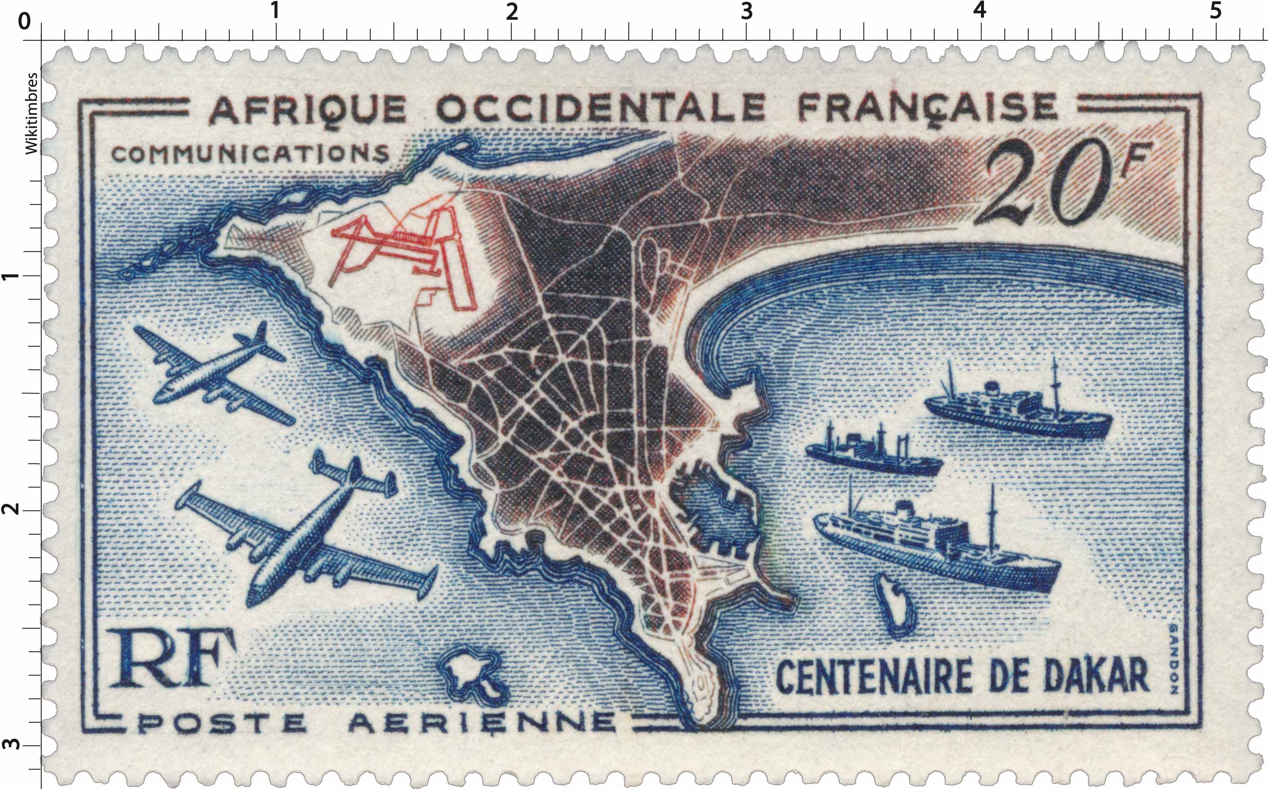| Description | Afrique Occidentale Française - Centenaire de Dakar, plan du port et de l'aéroport |