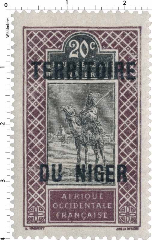 Timbre : Afrique occidentale française - territoire du Niger Mesures Format d'imp - Dents incluses - Forme - Phosphore - Impression - Complément - Couleur violet-brun et gris Valeur 20 c Dentelure - Emis en - Quantité - Auteurs Dessinateur - Graveur - Mise en page - Mentions - Numéros & Dates N° Philatelix - N° Michel - Date d'émission 01/01/1921 Date de retrait - Classements Groupe Niger - Targi Catégorie Timbres poste Familles Usage - Ancienne colonie Niger (en cours) Description Haut-Sénégal et Niger de 1914-17 surchargé Commentaire - Mes timbres & notes personnelles www.wikitimbres.fr