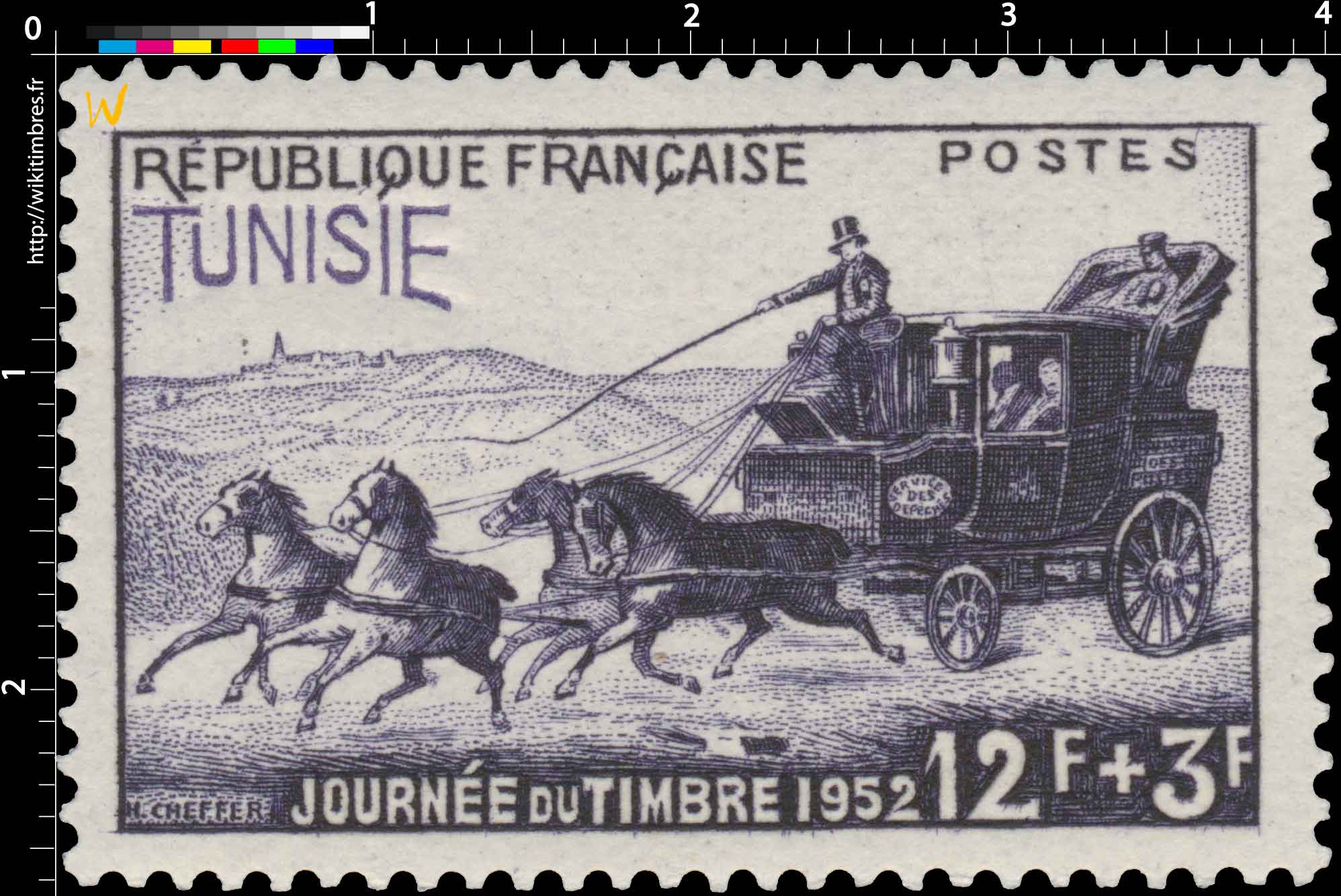 Tunisie - Journée du timbre 1952. Malle-poste