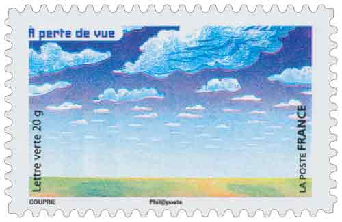 | Commentaire | Provenant du carnet de timbres "la vue" - série de carnet "les cinq sens" A perte de vue : regarder aussi loin que la vue peut porter, jusqu'à l'horizon |