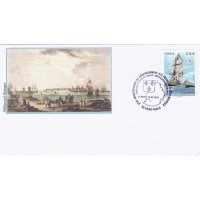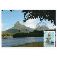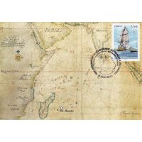 | Commentaire | En savoir plus sur Wikipédia : Guillaume Dufresne d'Arsel En savoir plus sur Wikipédia : Histoire de Maurice Représentation du navire « le Chasseur » commandé par le capitaine de vaisseau Guillaume Dufresne d'Arse, sur le point d'aborder sur l'île Maurice à la rade des Moluques, (futur Port Louis) il y plantera symboliquement la Croix aux Lys d'or le 27 juin 1751.On distingue à l'arrière-plan le mont du Rempart, qui domine la baie ainsi qu'une carte maritime ancienne de l'île. Historique : au retour de la troisième "Expédition de Moka" (ville portuaire du Yémen, à l'origine de la richesse caféière de "Mocha", cafés arabica), le vaisseau "Chasseur", commandé par le capitaine de vaisseau Guillaume Dufresne d'Arsel (1668- ?), est sur le point d'aborder et de prendre possession, au nom de Sa Majesté, de l'Isle nommée "Mauritius", le 20 sept. 1715, après avoir constaté que l'île et les îlots étaient totalement inhabités. La colonisation commencera vraiment en 1721, lorsque le chevalier Jean Baptiste Garnier du Fougeray en prit possession au nom de la Compagnie Française des Indes Orientales (créée le 27 août 1664, par Jean-Baptiste Colbert, sous Louis XIV) Un vaisseau de la flotte française, battant pavillon royale, des phaétons "petit paille-en-queue", oiseau emblématique des Mascareignes (logo d'Air Mauritius), tournoient autour du bateau, à l'arrière-plan, la silhouette de la Montagne du Rempart (au Sud de Port-Louis - 600m), qui domine la baie où les français ont abordé, et dans le coin supérieur droit, sous la valeur faciale, une carte maritime historique de l'Isle de France (Mauritius), avec sa "rose des vents".