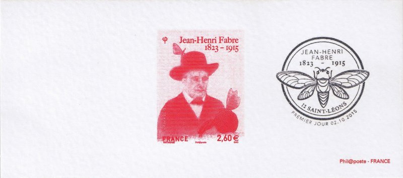 | Commentaire | Timbre à date “Premier Jour” conçu par Marion Favreau En savoir plus sur Wikipédia : Jean-Henri Fabre |